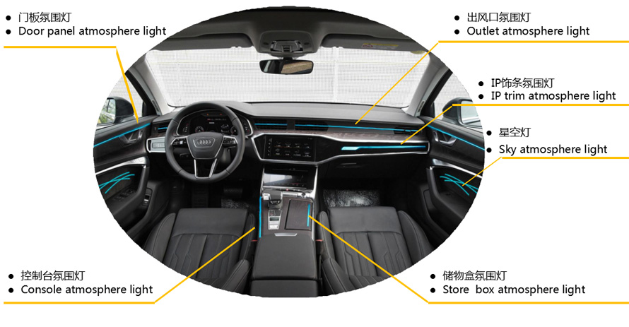 舒适性:汽车内饰氛围灯让车内灯光生活化,让车和家或者办公室一样温馨;